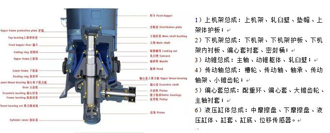 結構組成 上機架,下機架,動錐,傳動軸(zhóu),偏心套,液壓缸體 下機架,偏心(xīn)套,傳動,支(zhī)撐(chēng)套,調整環,動錐 附圖一、圖二