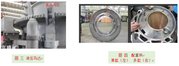 排(pái)料口調節裝置(zhì) 通過油泵對(duì)主軸油缸注(zhù)油或(huò)排(pái)油,使主軸上移或下移(yí),調(diào)節排料(liào)口大小。這種調整方式可能引(yǐn)起排礦口在(zài)破碎硬礦(kuàng)石時較難(nán)鎖緊 通過液壓推手(shǒu)或液(yè)壓馬達(dá),調整調整帽,從而帶動調整環在支撐套內旋轉(定錐螺旋轉動上下移動),達到調整作用。這種調節方式的好處是排礦口容易鎖緊。 圖三