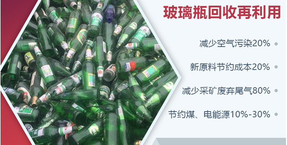 根據市場上(shàng)統計,一噸廢玻璃計算,就可以節約石英砂720公斤,少用純(chún)堿250公斤(jīn),節約長石粉60公斤,節約煤炭10噸、電400度,而且一(yī)噸廢舊玻璃回爐(lú)後(hòu),可再生2萬個(gè)酒瓶,比利用新原料(liào)生產節約成本20%左右,數據稍微偏差。