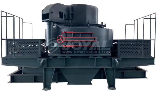 物料由機器上部垂直落入高(gāo)速旋轉的葉輪內,在高速離心力的作用下(xià),與另一(yī)部分(fèn)以傘狀形式分流在(zài)葉輪四周的物料產生高速撞擊而破碎,物料在相互(hù)撞擊後,又會在葉(yè)輪(lún)和(hé)機殼之間形成渦流並多次的互相撞擊、摩擦而粉碎,從下(xià)部垂直排出,通過篩分設備篩分出所要求的(de)成品粒(lì)度。是市麵上人(rén)工製砂(shā)和(hé)石(shí)料整形領域的設備。